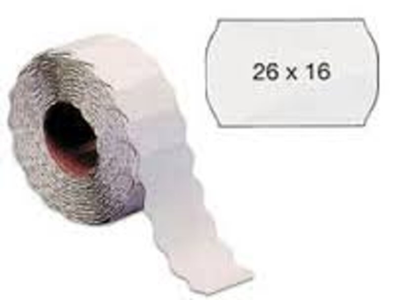Etichette formato 26X16 onda bianco permanente. Confezioni da 36 rotoli da 1000 etichette.